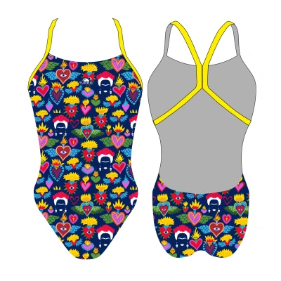 Este bañador Turbo está especialmente diseñado para la práctica de la Natación. Los tirantes estrechos aportan una total libertad de movimiento y flexibilidad, adaptándose perfectamente al cuerpo de la mujer. Al cubrir menos el hombro que el tirante ancho, evita marcas por contraste de tonalidades de piel debido a la exposición solar. Está confeccionado con el mejor tejido del mercado con un doble forro delantero. Es resistente al cloro de la piscina y a los rayos UV. Y por ello, la intensidad de sus colores se mantiene con el uso repetido en el tiempo.