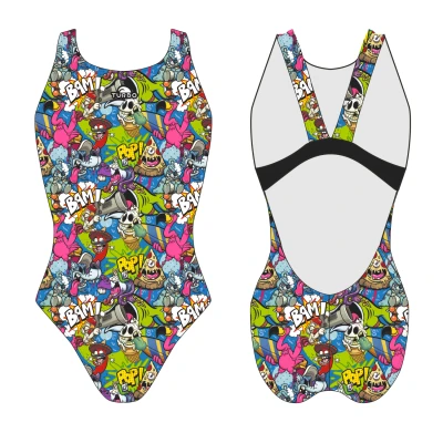 Este bañador Turbo está especialmente diseñado para la práctica de la Natación. Los tirantes anchos aportan una total libertad de movimiento, y a la vez, una mejor sujeción que el tirante fino. Además, no ejercen tanta presión sobre el cuerpo y pueden resultar más cómodos. Está confeccionado con el mejor tejido del mercado con un doble forro delantero. Es resistente al cloro de la piscina y a los rayos UV. Y por ello, la intensidad de sus colores se mantiene con el uso repetido en el tiempo.